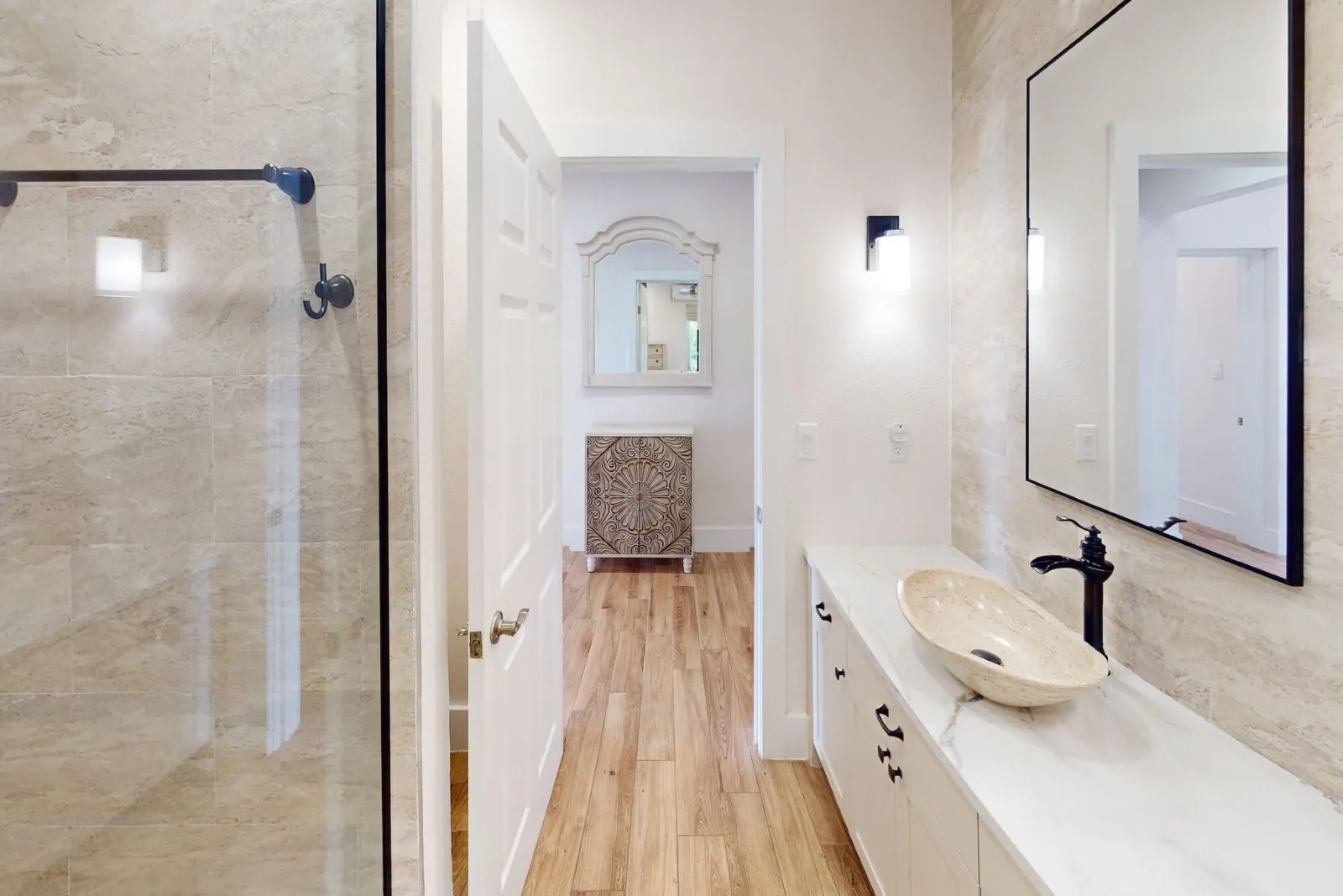 Guests can enjoy a nearby beach